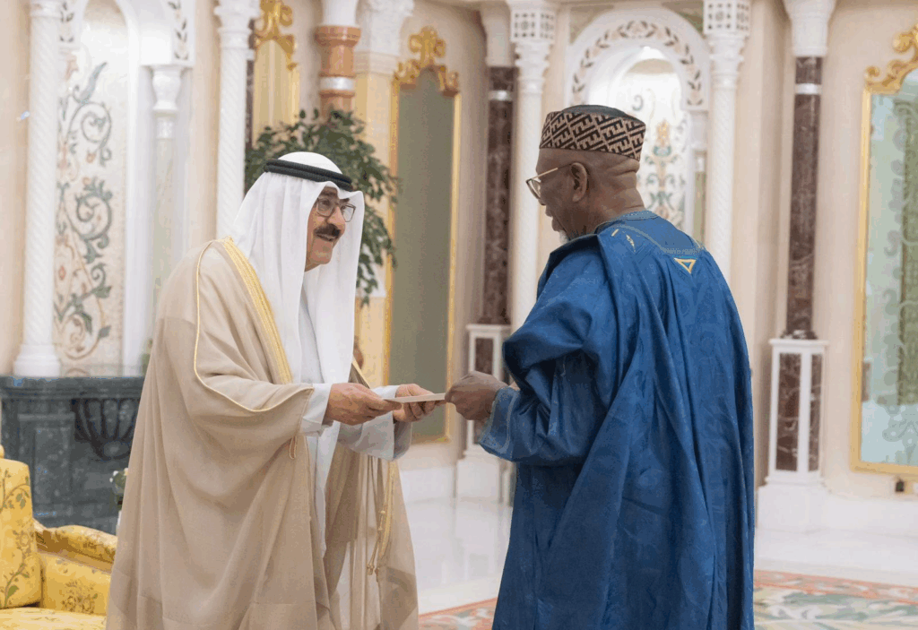 احتفل في قصر بيان صباح اليوم بتسلم حضرة صاحب السمو أمير البلاد الشيخ مشعل الأحمد الجابر الصباح حفظه الله ورعاه أوراق اعتماد كل من السفير د. آدم عبده حسن سفيرا لجمهورية النيجر والسفير د. براهيما دياكيتي كابا سفيرا لجمهورية ليبيريا والسفير باديرو أغيمون سفيرا لجمهورية بنين والسفير ميشال جوليوا سفيرا لجمهورية بولندا والسفير حسن سوغو سفيرا لجمهورية السنغال وذلك كسفراء لبلادهم لدى دولة الكويت.