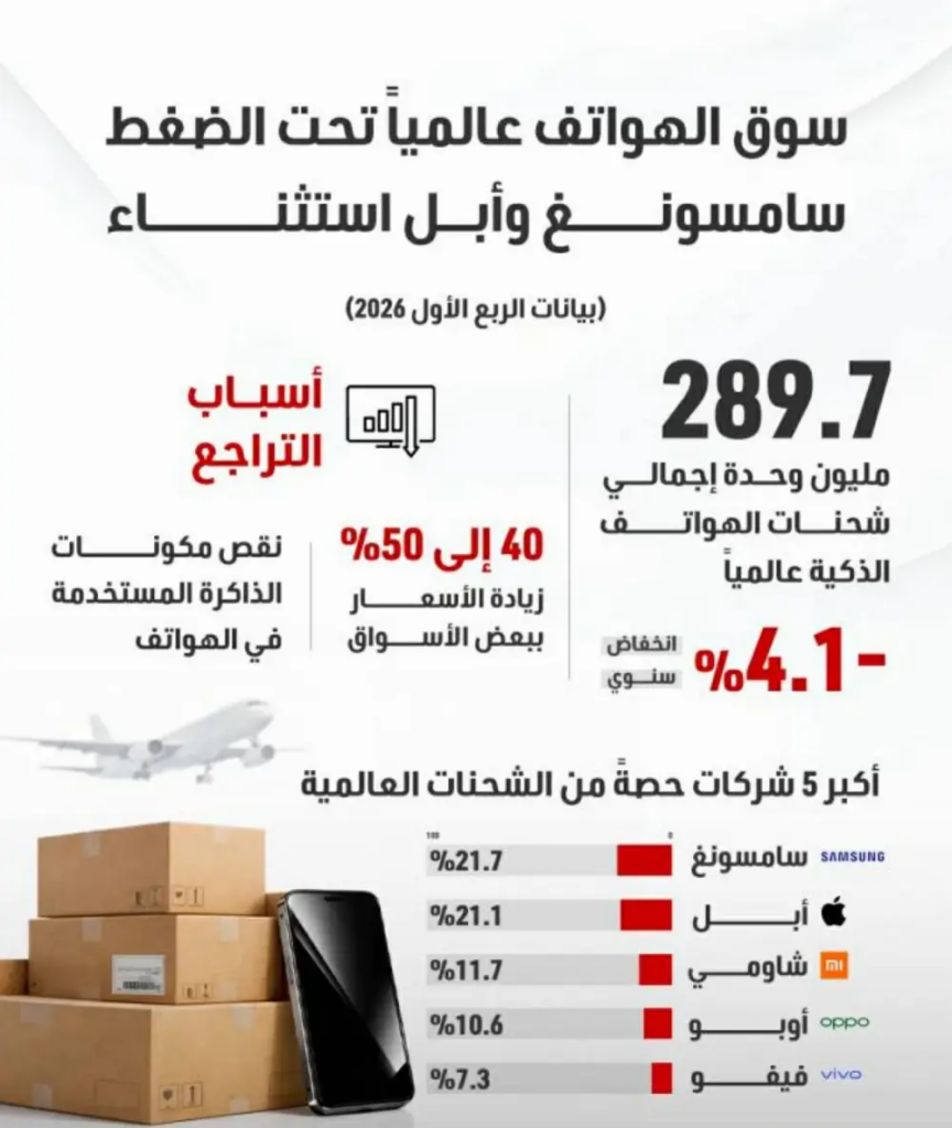 سوق الهواتف عالمياً تحت الضغط.. سامسونغ وأبل استثناء